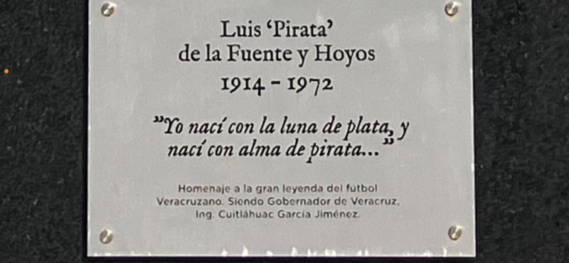 La estatua del mítico futbolista veracruzano Luis ‘Pirata’ Fuente yace en la entrada principal del estadio que lleva su nombre y que fue presentada ante el público en 2019.