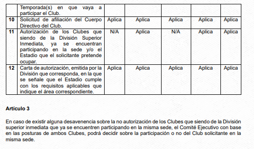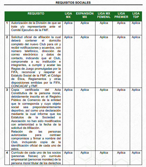 Dichos requisitos están estipulados en el Reglamento de Afiliación, Nombre y Sede de la Federación Mexicana de Futbol, específicamente en el Apéndice I: Requisitos de Afiliación, artículos 1, 2, 3, 4, 5, 6 y 7.