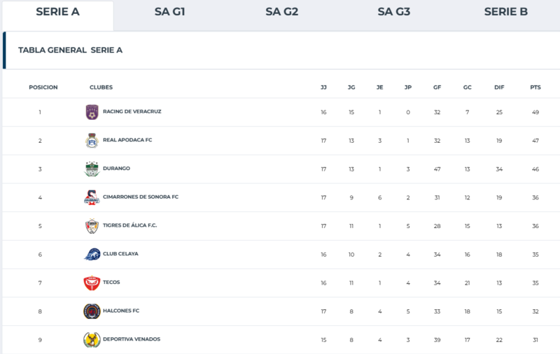 Además, Racing de Veracruz mantiene de forma cómoda el liderato del Grupo 3, al contar con 14 puntos de ventaja sobre su más cercano perseguidor, el Club Celaya.