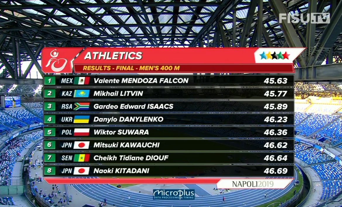El mexicano Valente Mendoza se colgó el oro luego de registrar 45.63 segundos en los 400 metros planos de la Universiada Mundial de Nápoles, Italia.