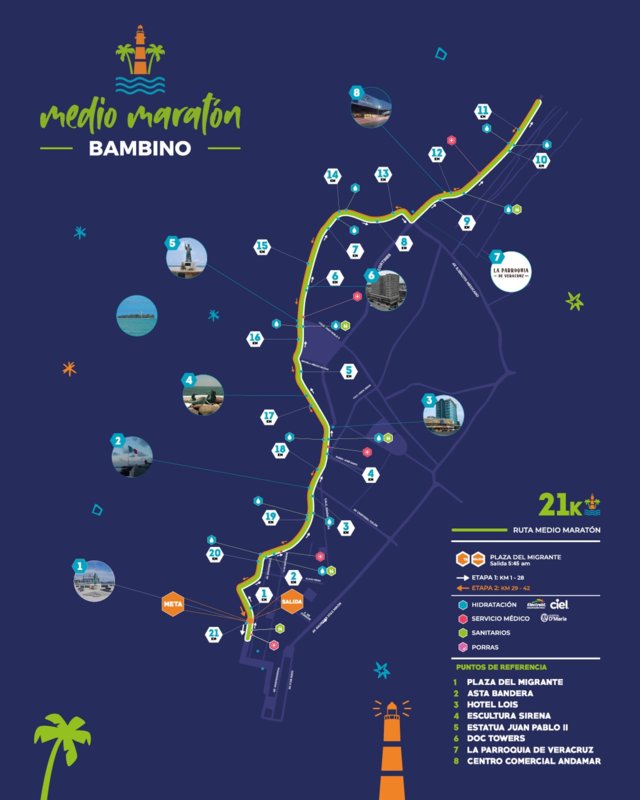 Las dos distancias tendrán como escenario principal el Boulevard Manuel Ávila Camacho, recorriendo la zona centro del puerto de Veracruz y puntos icónicos de Boca del Río.