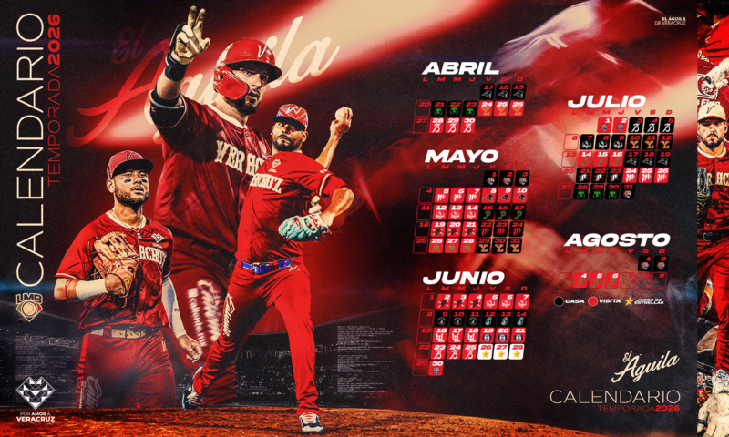La Liga Mexicana de Beisbol dio a conocer el calendario completo de juegos de El Águila de Veracruz para la temporada 2026.
